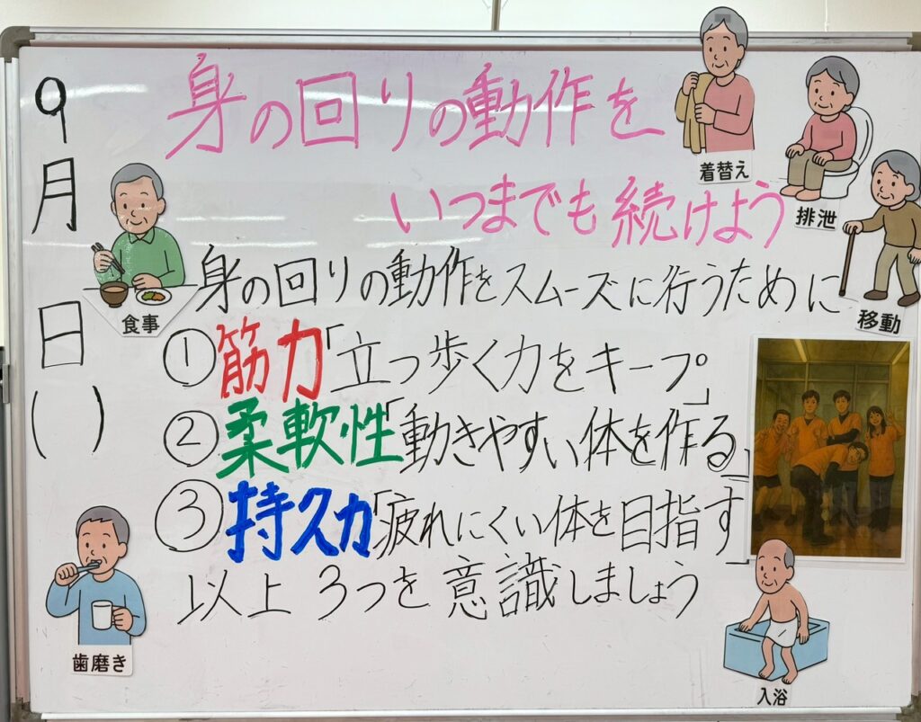 9月「身の回りの動作をいつまでも続けよう!」
